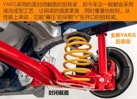 對于這些尺寸小巧的車型來說,提高車內的空間利用率非常的重要,日本工程師往往非常擅長這一點。在全新YARiS(兩驅版)和飛度都選擇了前麥弗遜+后扭轉梁的懸架結構,這是綜合性能和空間因素后最合理的設計方案。