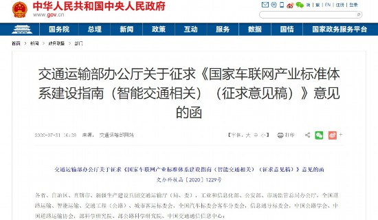 同日,交通運輸部公開發(fā)函,廣泛征求對《國家車聯(lián)網(wǎng)產(chǎn)業(yè)標準體系建設(shè)指南(智能交通相關(guān))(征求意見稿)》(以下簡稱《征求意見稿》)的意見。其中,對進一步明確標準制修訂重點,以及形成統(tǒng)一、協(xié)調(diào)的國家車聯(lián)網(wǎng)產(chǎn)業(yè)標準體系架構(gòu)作出部署。