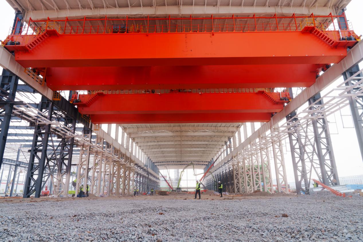 項(xiàng)目建設(shè)鋼結(jié)構(gòu)吊裝進(jìn)度突破90%,地面碎石層施工完成80%