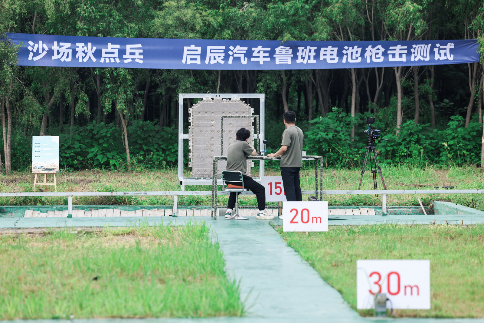 實測現(xiàn)場,試驗人員分別在距離電池包30米、20米和15米處進行射擊,而電池包做到了不起火,不爆炸,驗證了安全性能;碾壓測試中,一臺重達36噸的坦克在行進中壓過了魯班電池,后者雖經(jīng)受巨大沖擊,但狀態(tài)依然穩(wěn)定,未見任何起火或爆炸跡象。