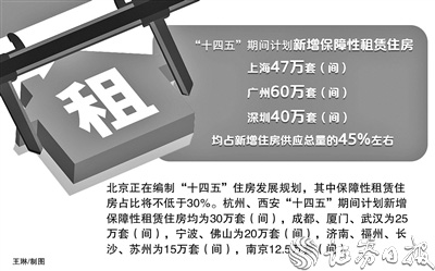 據(jù)了解,“十四五”期間,上海計劃新增保障性租賃住房47萬套(間)、廣州計劃新增60萬套(間)、深圳計劃新增40萬套(間),均占新增住房供應總量的45%左右。北京正在編制“十四五”住房發(fā)展規(guī)劃,其中保障性租賃住房占比將不低于30%。杭州、西安“十四五”期間計劃新增保障性租賃住房均為30萬套(間),成都、廈門、武漢為25萬套(間),寧波、佛山為20萬套(間),濟南、福州、長沙、蘇州為15萬套(間),南京12.5萬套(間)。