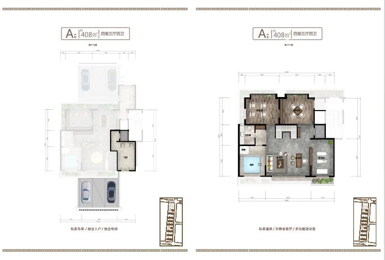 地下室設(shè)計(jì)不同于傳統(tǒng)地下室,只能為儲藏室使用,而小區(qū)地下室層高和地上建筑面積層高一致,達(dá)到了3.2米,沒有空間壓抑感,在南北庭院都設(shè)有1.2米的通風(fēng)采光井,室內(nèi)鋪設(shè)地暖及溫泉管道,上下水和衛(wèi)生間,私密性特強(qiáng),可以設(shè)計(jì)桑拿房,健身房,保姆間,洗衣房,酒窖及休閑娛樂等多功能區(qū)域,對于鄰居既不會產(chǎn)生噪音干擾,更不會打擾到家人的休息,在提高了生活品質(zhì)的同時(shí)也不會由空間局促感,地下室可以直通地下私家車庫,車庫層高4.2米,寬約7-10米,至少可以容納家用汽車三輛。