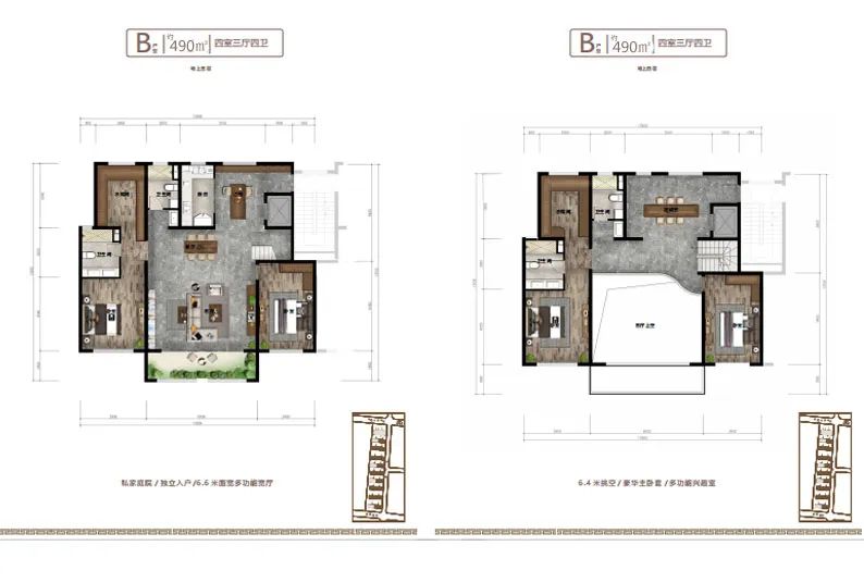 項(xiàng)目主打聯(lián)排疊墅戶型設(shè)計(jì),疊墅是低密度住宅,樓距寬,樓棟密度小,保持有一定的私密性,每戶擁有私家獨(dú)立庭院,及私家花園露臺,庭院入戶,室內(nèi)層高3.2米,每戶設(shè)有私家電梯可以直達(dá)室內(nèi)任一層及空中露臺,地下室和私家車庫。客廳開間6.6米,層高挑空6.4米的設(shè)計(jì)(挑空部分不計(jì)算面積),另外挑空部分可以根據(jù)業(yè)主需求,自行設(shè)計(jì),可以增加一個(gè)約40平米的起居室。