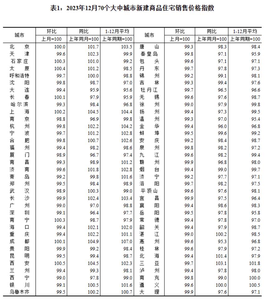 中新網(wǎng)1月17日電 1月17日,國家統(tǒng)計局公布的數(shù)據(jù)顯示,2023年12月份,70個大中城市中,各線城市商品住宅銷售價格環(huán)比下降、同比有漲有降。