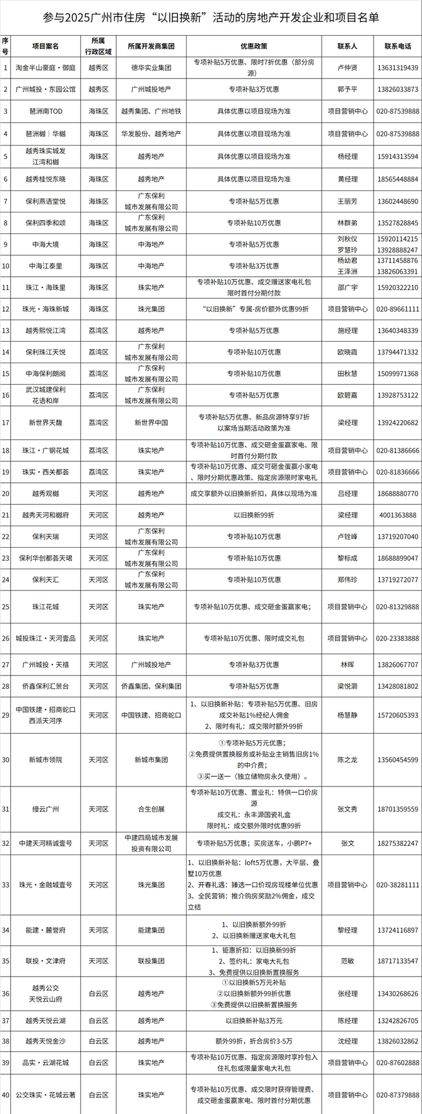本次活動首批吸引超40家房企、近70個項目參與,覆蓋剛需、改善、高端全產(chǎn)品線,并推出“折上折”“無憂退訂”“家裝大禮包”等疊加優(yōu)惠。廣州市房協(xié)將依托“廣州市房地產(chǎn)行業(yè)協(xié)會”官方微信小程序搭建線上服務(wù)平臺,實現(xiàn)房源智能匹配、補(bǔ)貼申領(lǐng)、政策咨詢等功能,進(jìn)一步優(yōu)化市民換房體驗。