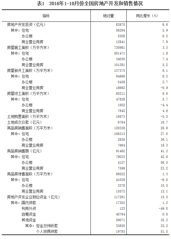1-10月房地產(chǎn)開發(fā)同比增長6.6%