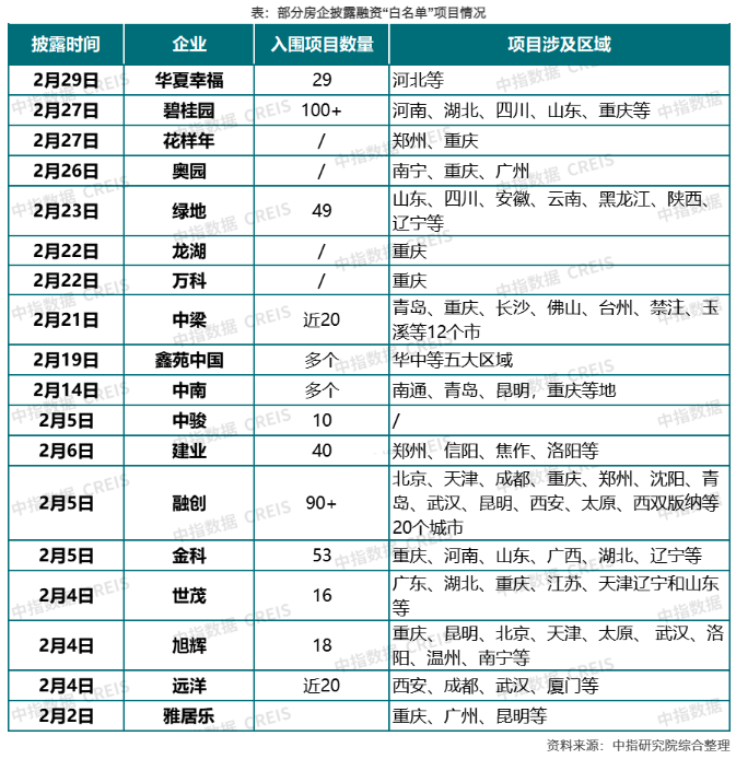 根據(jù)中指研究院監(jiān)測,城市房地產(chǎn)融資協(xié)調(diào)機(jī)制建立以來,鄭州、成都、重慶、昆明等城市上報(bào)項(xiàng)目數(shù)量均超200個,部分出險(xiǎn)房企也有多個項(xiàng)目進(jìn)入白名單,在“推送-反饋”工作閉環(huán)下,出險(xiǎn)房企的項(xiàng)目獲得融資支持的機(jī)會也有望增加,有利于進(jìn)一步穩(wěn)定市場預(yù)期。