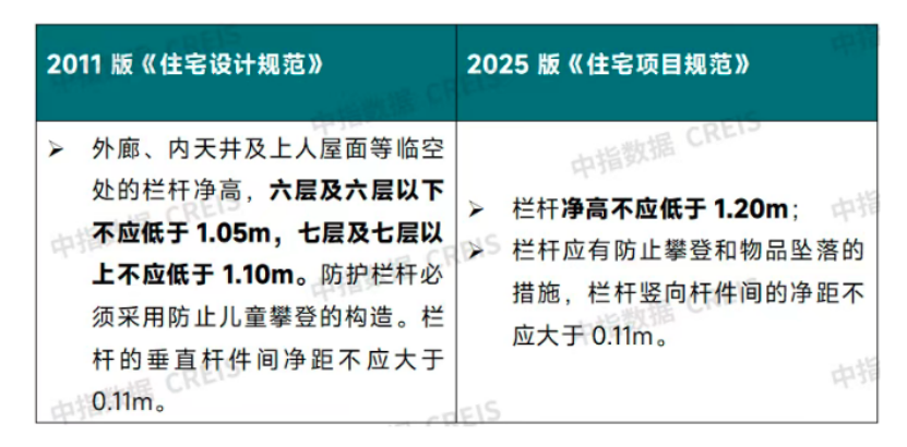 陽(yáng)臺(tái)等欄桿高度提升至1.2米,提升居住安全性