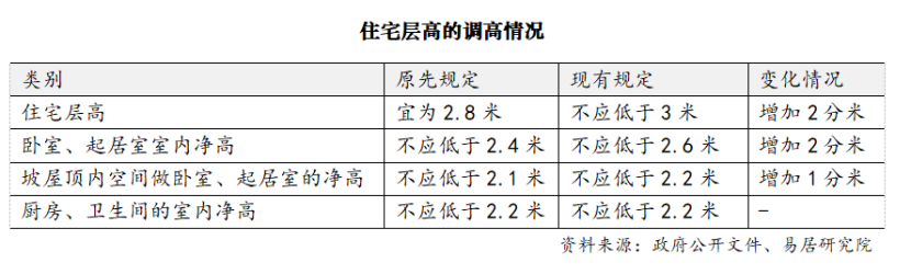 住宅層高不應(yīng)低于3米,標(biāo)準(zhǔn)顯著提高
