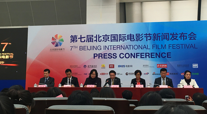 第七屆北京國(guó)際電影節(jié)新聞發(fā)布會(huì)現(xiàn)場(chǎng) (人民網(wǎng)陳燦 攝)
