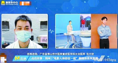 “你好,‘佛山李現(xiàn)’張興欽醫(yī)生,我是荊州李現(xiàn)?!薄罢啤崩瞵F(xiàn)的聲音在《抗疫故事·荊州》直播連線中響起,李現(xiàn)對他說,“有人說我們的眉眼很像,我猜摘掉口罩的你一定更帥。感謝這段時間以來你們在前方的努力與付出,我為你和你的同事們加油,也請你們一定保重。”