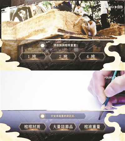紀(jì)錄片相對(duì)小眾,知識(shí)性遠(yuǎn)遠(yuǎn)大于娛樂(lè)性,尤其是有些作品中知識(shí)呈現(xiàn)方式的無(wú)趣加深了與大眾的隔閡,最后知識(shí)的傳達(dá)率也難以考察。但在互動(dòng)紀(jì)錄片中,知識(shí)的接受甚至變成一種強(qiáng)制性的沉浸行為,因?yàn)橛^眾自己必須做選擇題。比如《古墓派·互動(dòng)季》中重回當(dāng)年的考古現(xiàn)場(chǎng),你是“就地開(kāi)棺”還是“運(yùn)回實(shí)驗(yàn)室”?甚至還有一些更專業(yè)的互動(dòng),在第三集《致命死因》中,觀眾需要判斷這兩具尸體的死因,究竟是死于吞金、投毒,還是別的原因呢?不同的選擇會(huì)觸發(fā)不同的劇情或者醫(yī)學(xué)解讀。