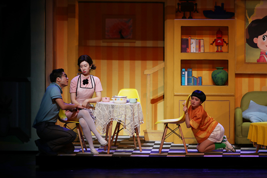 “大頭兒子”音樂話劇版導(dǎo)演胡曉慶介紹,音樂劇保留了原著的人設(shè),通過“大頭兒子”穿越平行世界這個(gè)全新的故事,試圖探討父母和子女兩代人之間的溝通誤區(qū)。