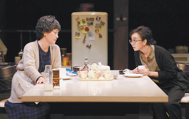 “《晚安,媽媽》沒有大的戲劇沖突,所有的矛盾都來自真實的生活,通過合情合理的人物關(guān)系和環(huán)環(huán)相扣的對話,去撥開日常生活之下翻滾的心。”唐燁形容,這是一部沒有借助所謂的“手段”的作品,100分鐘的演出真誠動人,靠的是扎實的舞臺實景和兩位演員牽動肺腑的表演——冰箱里塞滿食物,杯子盛著冒白氣的熱巧克力,水龍頭能擰出自來水,沒有刻意的音樂和效果,整座舞臺如同真實生活的切面。演員需要在“做家務(wù)”的同時進行快節(jié)奏、高密度的對話,“手上不能停,但也不能攪戲,比如母女倆換沙發(fā)套的那一段,我們就練了很久很久?!碧茻钫f。
