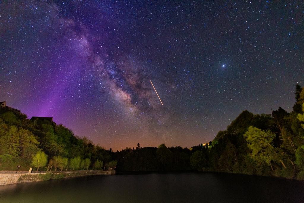 攝影愛好者在雞公山上的月湖拍攝的星空。(受訪單位供圖)
