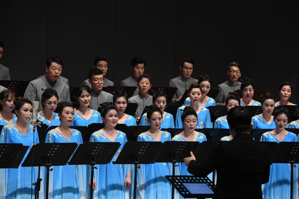9月7日,山東濟(jì)寧市仁之聲教師合唱團(tuán)在北京大學(xué)百周年紀(jì)念講堂演唱無伴奏合唱套曲《〈論語〉節(jié)選》。新華社記者 張善臣 攝