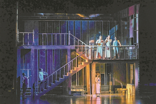 《春園·1923》采用了360度旋轉(zhuǎn)舞臺(tái)的設(shè)計(jì)。通過豐富的舞臺(tái)轉(zhuǎn)場(chǎng),春園和曾為中共三大會(huì)址的兩層小樓凝練地佇立在同一空間,隨著舞臺(tái)旋轉(zhuǎn)、時(shí)空切換,人物在場(chǎng)景內(nèi)外自如穿梭,推進(jìn)著故事的發(fā)展。