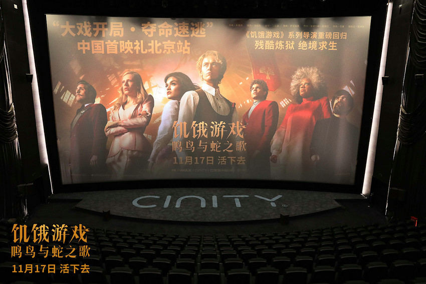 電影《饑餓游戲:鳴鳥與蛇之歌》于11月14日舉辦“大戲開局·奪命速逃”中國(guó)首映禮,分別在北京與南京兩地與影迷朋友們提前見面,現(xiàn)場(chǎng)不僅有“奇跡戰(zhàn)歌”循環(huán)播放,帶人一秒入戲;更有主演湯姆·布萊斯和導(dǎo)演弗朗西斯·勞倫斯二人的問候視頻播出,影片將于11月17日以4K/IMAX/CINITY/CGS中國(guó)巨幕/4DX/DTSX版本全球同步上映。