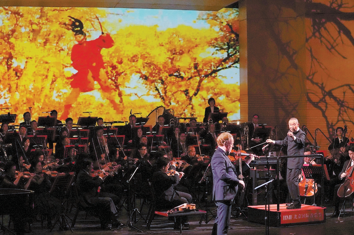 譚盾指揮《武俠三部曲》交響音樂會劇照。北京日報(bào)記者 方非攝
