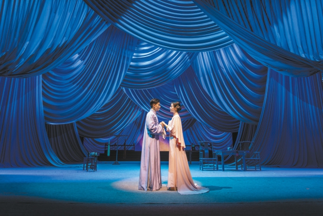 近日,北京人民藝術(shù)劇院再次排演該劇,以意象化手段賦予劇中男女主人公的愛情以詩意——不但在兩人交談時加入了許多戲曲身段,更加入了新的臺詞強化兩人的愛慕之情;結(jié)尾以一段雙人舞展現(xiàn)兩個自由的靈魂在虛空中的相會;不時出現(xiàn)的昆曲《牡丹亭》作為背景音樂,昭示兩人超越生死的愛戀。