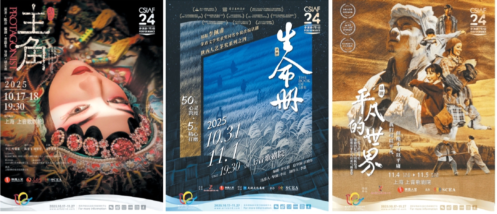“茅獎系列”作品《主角》《生命冊》《平凡的世界》《白鹿原》以及“陳彥三部曲”《星空與半棵樹》五部大戲?qū)⒃谏弦舾鑴≡毫料?。圖為部分演出海報。