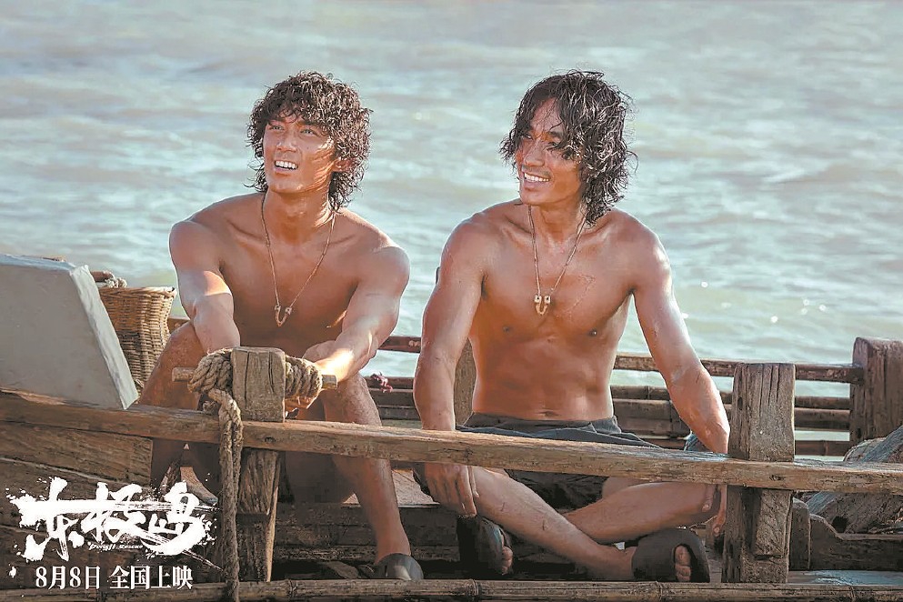 《東極島》劇照,朱一龍(右)飾演阿赑,吳磊飾演阿蕩。兄弟倆從最初為生存出海,到目睹日軍暴行后主動承擔(dān)責(zé)任,最終成為救援主力,主打“平凡人變英雄”的成長線。