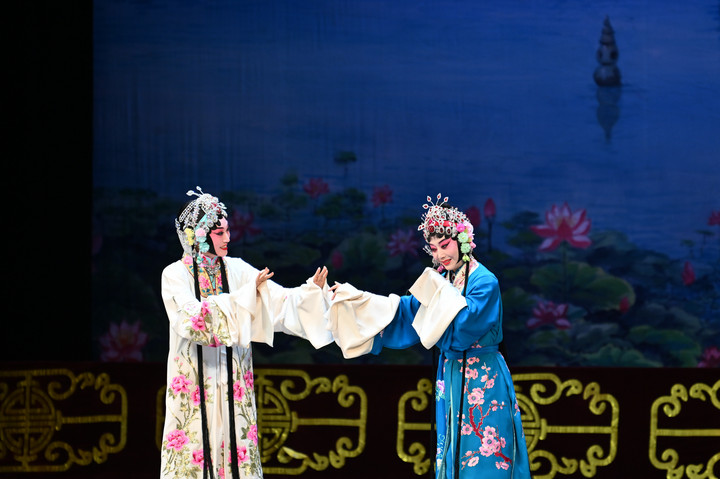 9月13日,在天津大禮堂,演員在舞臺上表演戲劇《白蛇·喜見升卿》。新華社記者 孫凡越 攝