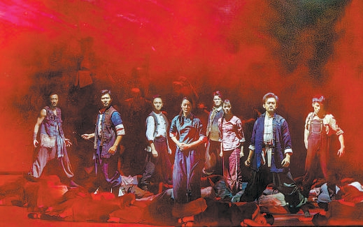 “我們?cè)谏綎|地區(qū)民間藝術(shù)中汲取、提煉了獨(dú)特的韻味。”田露把鮮活的地域文化視作創(chuàng)作的沃土。新版《鐵道游擊隊(duì)》著重吸收了山東膠州、鼓子、海陽(yáng)等地的秧歌素材,對(duì)特有的動(dòng)勢(shì)、動(dòng)態(tài)進(jìn)行了藝術(shù)轉(zhuǎn)化。國(guó)家大劇院BDA青年舞團(tuán)與北京舞蹈學(xué)院中國(guó)民族民間舞系的舞者,用堅(jiān)毅有力的肢體舞動(dòng)出抗戰(zhàn)的慘烈與斗爭(zhēng)的智慧,前赴后繼的血肉之軀撲倒在戰(zhàn)火中,但必勝的信念永不屈服。
