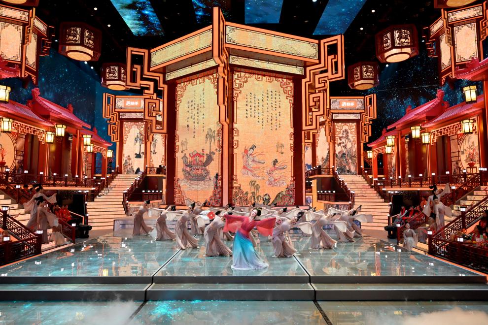 近年來,遼寧春晚不斷將獨特的區(qū)域文化深度融入節(jié)目中。2023年復(fù)刻遼代壁畫《散樂圖》,2024年以查海遺址“石堆塑龍”為靈感創(chuàng)作節(jié)目《龍騰》,2025年從《簪花仕女圖》中提取意象打造詩畫舞蹈……遼寧春晚正在成為東北文化的講述者。