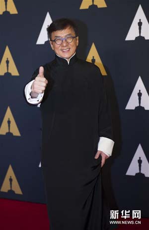 11月12日,成龍出席在洛杉磯好萊塢舉行的第8屆美國電影藝術(shù)與科學(xué)學(xué)院(簡稱影藝學(xué)院)理事會獎?lì)C獎典禮。影藝學(xué)院理事會12日授予中國影星成龍和其他三位英美電影人奧斯卡終身成就獎,以表彰他們?yōu)殡娪八囆g(shù)作出的杰出貢獻(xiàn)。成龍也是首位獲此殊榮的華人。新華社記者楊磊攝