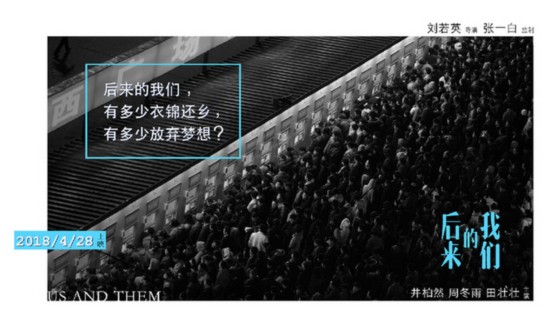 劉若英導(dǎo)演電影處女作《后來的我們》昨天(11日)發(fā)布第一波海報(bào)與預(yù)告,并宣布定檔4月28日。該片由張一白監(jiān)制,井柏然、周冬雨領(lǐng)銜主演,田壯壯主演。值此春運(yùn)回家高峰期發(fā)布的系列海報(bào),用質(zhì)問的方式帶出人生與春運(yùn)的現(xiàn)實(shí)主題:〝為什么只有過年,才會(huì)想到回家?〞、“為什么討厭春運(yùn),卻還要回家?”、“為什么在擁擠的人群里,還覺得自己孤身一人?”等,直戳觀眾內(nèi)心,引發(fā)熱議。劉若英導(dǎo)演也希望透過春運(yùn)的提問,讓這個(gè)愛情故事更貼近現(xiàn)實(shí)生活與人生感動(dòng)。