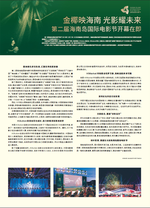 海南島面向世界,是中國的開放之島,也是未來之城。以這座城市為背景舉辦的第二屆海南島國際電影節(jié)開幕在即,讓我們在冬日暖陽中,相約海南,共赴這場別具一格的光影盛宴,感受光影四射的影像魅力,推動電影產業(yè)蓬勃發(fā)展。