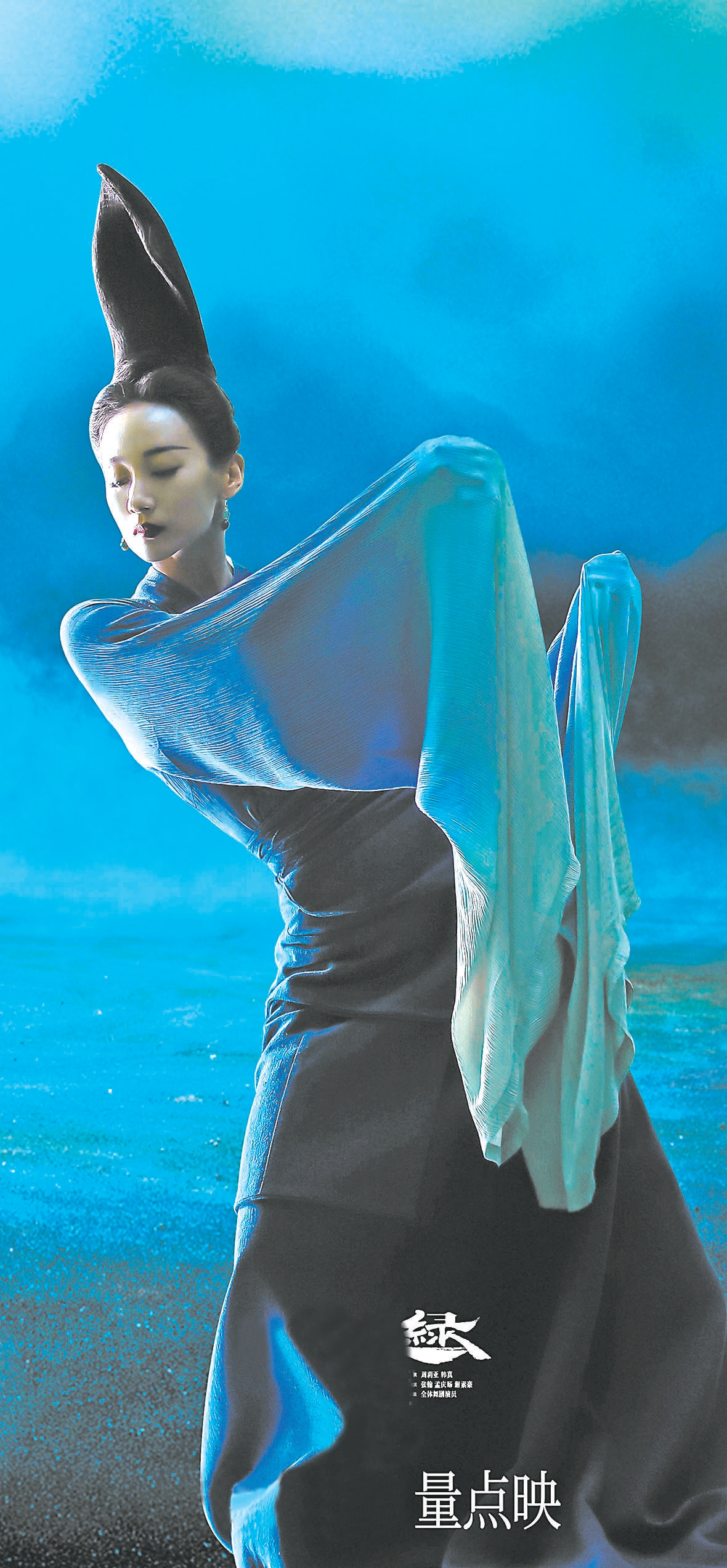 除此之外,《只此青綠》對舞蹈部分的呈現(xiàn)也十分精彩,用近景和特寫捕捉動作細(xì)節(jié),用全景拍攝群舞的整體畫面。故事中情緒激昂的部分,如“問篆”“尋石”“淬墨”三篇,利用傾斜、旋轉(zhuǎn)等特殊景別和運(yùn)鏡來表達(dá)。寫意較多的部分,如“青綠”“入畫”兩篇,用特效輔助畫面,舞者的裙裾在地面上留下青綠墨痕,讓已在畫中靜待千年的色彩瞬間活了起來。此外,高速攝影進(jìn)一步保留了舞者的姿態(tài)和動作細(xì)節(jié)。可以說,電影版《只此青綠》充分利用銀幕鏡頭的特性,幫助觀眾更好地欣賞、理解舞蹈,也讓整個故事有了更強(qiáng)的沉浸感。