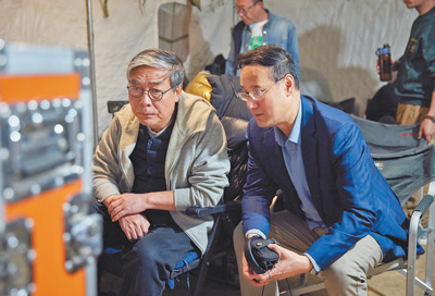 圖為《西北歲月》總導(dǎo)演董亞春(左)和總制片人王勇在工作中?!段鞅睔q月》片方供圖