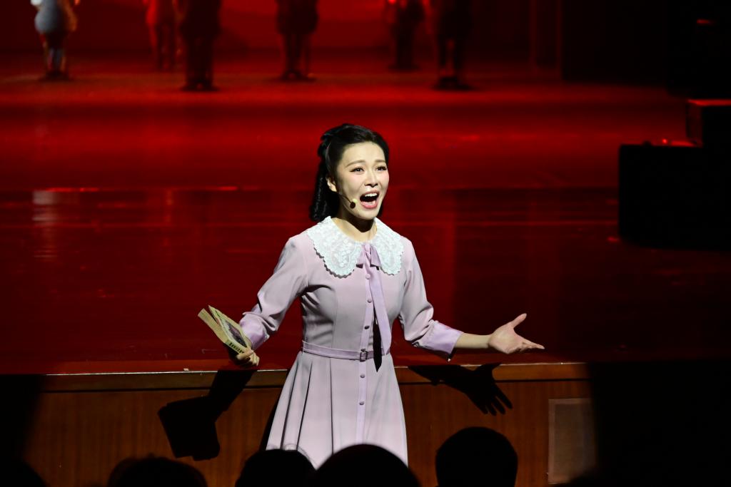 8月2日晚,音樂(lè)劇《致青春》在烏魯木齊文化中心大劇院完成謝幕演出。圖為《致青春》劇照。(演出方供圖) 舞臺(tái)上,苗族群舞《苗女出嫁》的紅傘如紅云翻涌,芭蕾舞與小合唱交疊,人物命運(yùn)與悲歡有了更強(qiáng)烈的畫(huà)面感。