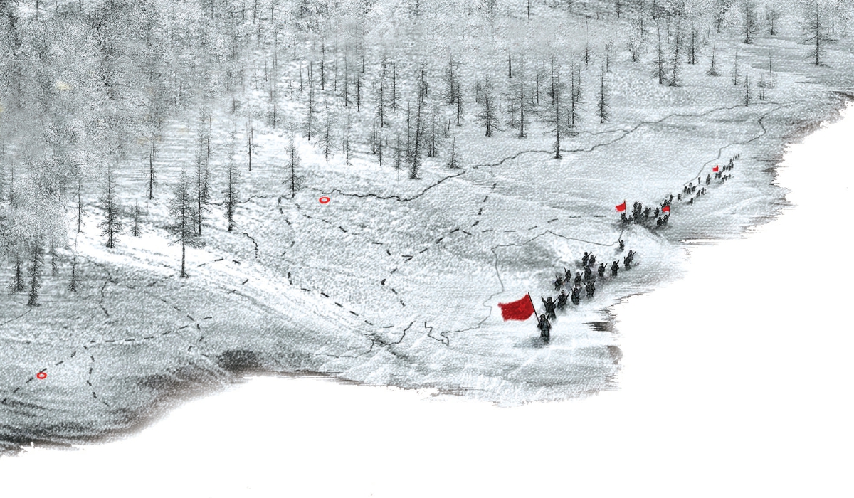 每年很長(zhǎng)時(shí)間,這里的氣候不適合室外生存,冬季氣溫更低至零下三四十度,有人的耳朵、手指、腳趾甚至?xí)粌龅簟H哲妼?dāng)?shù)卮迕駨?qiáng)制集中居住,抗聯(lián)得不到食物、衣服等。正如《歸隊(duì)》中所呈現(xiàn)出來(lái)的那樣:戰(zhàn)士們輕易不能生火取暖,深可沒(méi)腰的積雪限制了我方移動(dòng),行蹤又很容易被發(fā)現(xiàn)——敵人會(huì)沿著雪地上的腳印,進(jìn)行追擊。