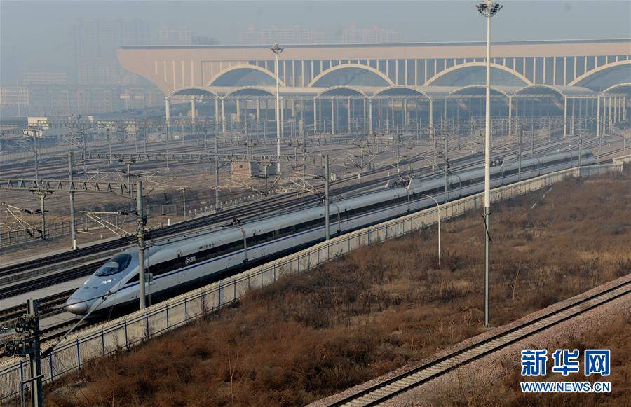 一輛動(dòng)車組列車駛離石家莊火車站(1月9日攝)。 1月10日零時(shí)起,全國(guó)鐵路實(shí)行新的列車運(yùn)行圖,增開旅客列車285.5對(duì),其中增開動(dòng)車組列車281.5對(duì)。運(yùn)行圖調(diào)整后,全國(guó)鐵路開行旅客列車總數(shù)達(dá)到3142對(duì),其中動(dòng)車組列車1980.5對(duì)。新華社記者 牟宇 攝