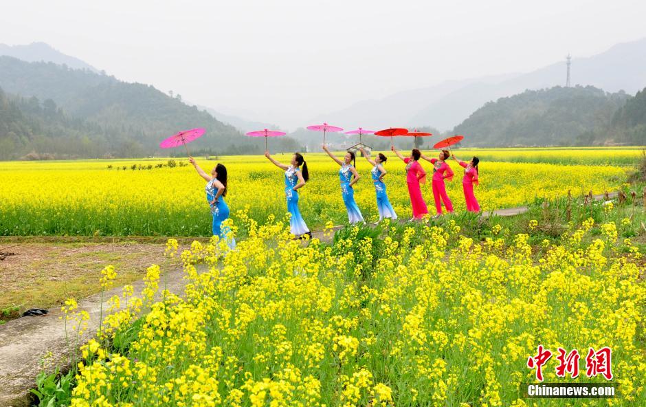 3月20日,江西省德興市??阪?zhèn)杜村婦女在田間花?!白咝恪?。當日,江西德興市??阪?zhèn)杜村一批家庭婦女以千畝油菜花海為舞臺,展示自己的才藝形象,希望宣傳家鄉(xiāng)的自然生態(tài)與人文歷史,擴大旅游知名度和影響力。德興市??阪?zhèn)杜村交通便利,自然風光優(yōu)美,村內(nèi)有歷史古跡和名木古樹。 胡敦煌 攝