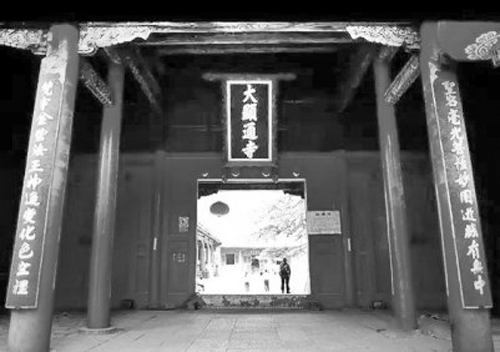 鐘樓上懸吊的大銅鐘叫幽冥鐘,也叫長(zhǎng)鳴鐘,鑄造于明天啟年間(1612-1627年),鐘身高八尺,最大外徑五尺,厚三寸,鐘口邊緣成蓮花瓣形狀,外皮刻有楷書(shū)佛經(jīng)一部,共有一萬(wàn)多字。這口銅鐘是五臺(tái)山寺廟中最大的鐘,據(jù)說(shuō)重九千九百九十九斤。穿過(guò)鐘樓門洞,沿石鋪道右拐左折,便是顯通寺的山門。山門看上去豪雄而典雅,兩旁豎著石碑,碑身一邊是大草“龍”字,一邊是大草“虎”字,自由揮灑,一筆寫(xiě)就,字形具有龍虎的形象,為雷雨居士所書(shū)。據(jù)說(shuō),佛寺選址講求風(fēng)水,除了靠山之外,總以左青龍、右白虎為佳,顯通寺山門兩側(cè)無(wú)此二山,故立此二碑為補(bǔ)。