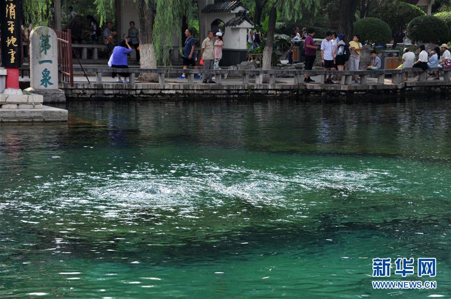 受近期雨水充沛的影響,以趵突泉為代表的濟(jì)南市區(qū)名泉紛紛復(fù)蘇,基本恢復(fù)了正常噴涌的景觀。 新華社記者 徐速繪 攝