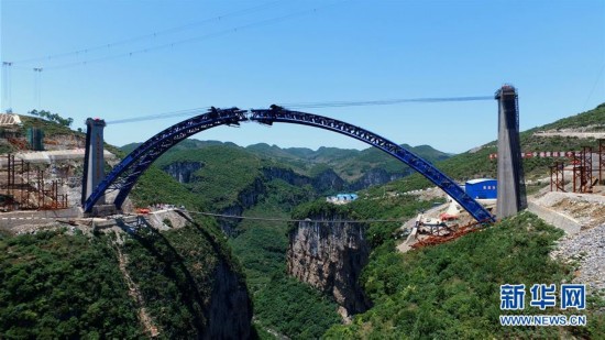 即將合龍的西溪河大橋(5月10日攝)。西溪河大橋位于貴州畢節(jié)地區(qū),是成都至貴陽(yáng)高速鐵路的重難點(diǎn)控制性工程。正在建設(shè)中的成貴鐵路將經(jīng)過(guò)包括紅軍二渡赤水的決策地——云南威信縣在內(nèi)的四川、貴州、云南省境內(nèi)的多個(gè)縣市,革命老區(qū)威信將在不久的將來(lái)結(jié)束沒(méi)有鐵路的歷史,邁入高鐵時(shí)代。 “紅軍不怕遠(yuǎn)征難,萬(wàn)水千山只等閑?!遍L(zhǎng)征譜寫(xiě)了一曲人類(lèi)征服自然的凱歌,峽谷激流、雪山草地、物資匱乏、生命禁區(qū),這一切都不能阻擋紅軍前進(jìn)的步伐。80年過(guò)去,滄海桑田,紅軍長(zhǎng)征走過(guò)的荒郊野嶺,如今樓宇林立,欣欣向榮;徒步翻越的大山、攻克的關(guān)隘、沼澤遍布的草地、泅渡的河流,修起了通暢快捷的公路和大橋……長(zhǎng)征之路發(fā)生了翻天覆地的變化,昔日的艱難險(xiǎn)阻正漸漸變成康莊通途。新華社發(fā)(王會(huì)堂攝)