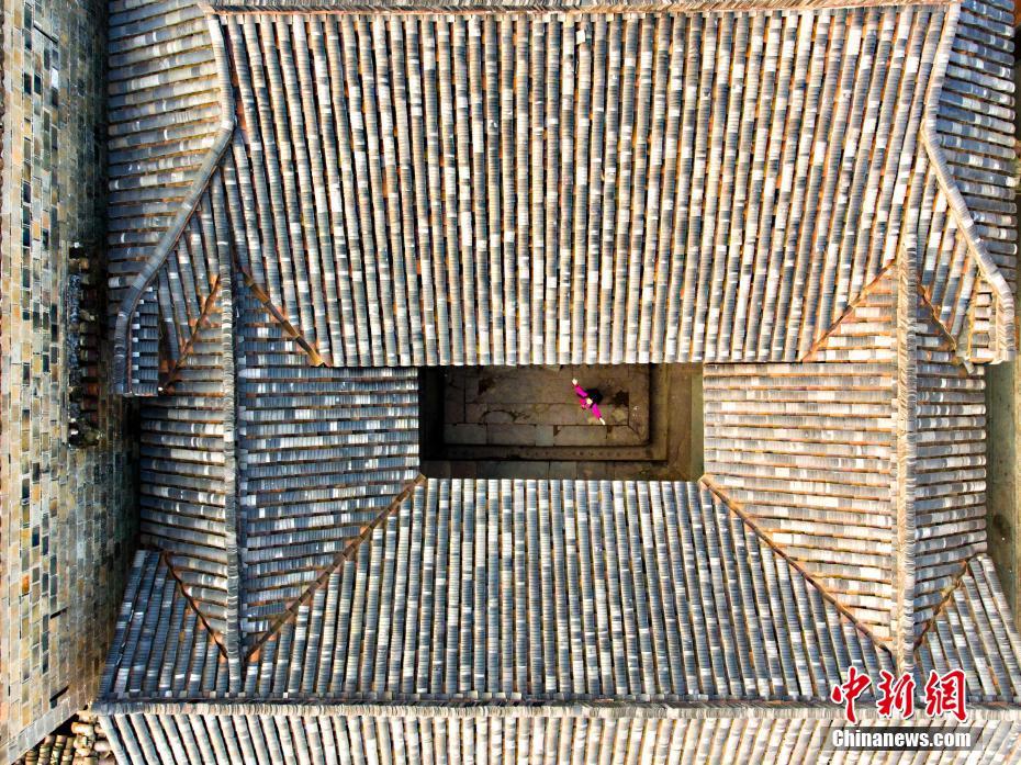 12月10日,航拍位于江西金溪縣有著600多年歷史的中國(guó)歷史文化名村、中國(guó)傳統(tǒng)村落竹橋古村,俯瞰全村,形似一柄巨扇。該村現(xiàn)保存有明代所建民居8幢,明代祠堂1幢,其余為清代建筑,青磚灰瓦,樸實(shí)素雅,為贛派建筑最典型的代表。村前溪水長(zhǎng)流,良田萬(wàn)頃,村后茂林修竹,鳥鳴樹幽,身歷其境,如入畫中。傅建斌 攝