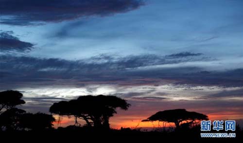 這是3月18日在肯尼亞安博塞利國家公園拍攝的日落景色。在安博塞利國家公園內(nèi),其特有的“安博塞利沼澤”便是依靠山頂積雪融水,成為大象、河馬、野牛等多種大型野生動物的棲息地。 新華社/路透