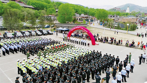 為了擦亮佛教圣地五臺山這個旅游窗口,打造形象五臺山,忻州市公安局部署從今年5月1日起至10月31日,在五臺山風(fēng)景區(qū)開展流動人口暨治安秩序大整治(即兩項整治)工作,從秩序安全、流動人口管理、治安、交通和消防等5大類33個層面對五臺山風(fēng)景區(qū)進行集中整治。時值“兩項整治”進入高潮之際,五臺山迎來了“5.19”中國旅游日,忻州市公安局黨委將此次“5.19”治安工作作為“兩項整治”的第一次大考,當(dāng)作首次檢驗整治機制、設(shè)施、效果和隊伍的絕佳機會。為此,市公安局從市局、五臺山風(fēng)景區(qū)、五臺縣、繁峙縣、原平市、代縣等地和武警、消防、保安公司抽調(diào)精干警力和安保人員組成執(zhí)勤隊伍。18日下午,市公安局在五臺山景區(qū)舉行戰(zhàn)前動員會。動員指出:省、市黨委政府高度重視五臺山工作,忻州公安要提高政治站位抓安保;“5.19”安保是對全市公安機關(guān)戰(zhàn)斗力的一次綜合檢驗,是十九大前的一次安保實兵演練,要堅定必勝信心抓安保;此次安保意義重大,要發(fā)現(xiàn)差距,總結(jié)經(jīng)驗,固化機制,為五臺山形成安全穩(wěn)定暢通有序的長效安保機制打下基礎(chǔ)。