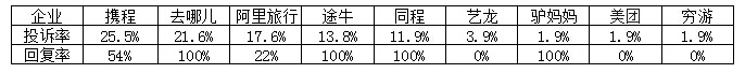2017年5月旅游企業(yè)投訴回復(fù)率