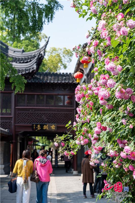 “我想讓風也開花......”許下的愿望,在逸飛之家,粉黛紛飛留下周莊最深刻的記憶。滿架薔薇一院香,微風簾動生活家。古戲臺外,一樹繁花沾了牡丹亭的軟糯,水磨腔合著微風拂過,醉了游人。