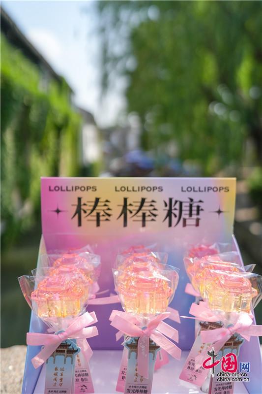 冰激凌融化的第一口,“古牌樓”棒棒糖戴著蝴蝶結(jié)突發(fā)奇想,發(fā)著光:“姑蘇繁華,最明周莊”。