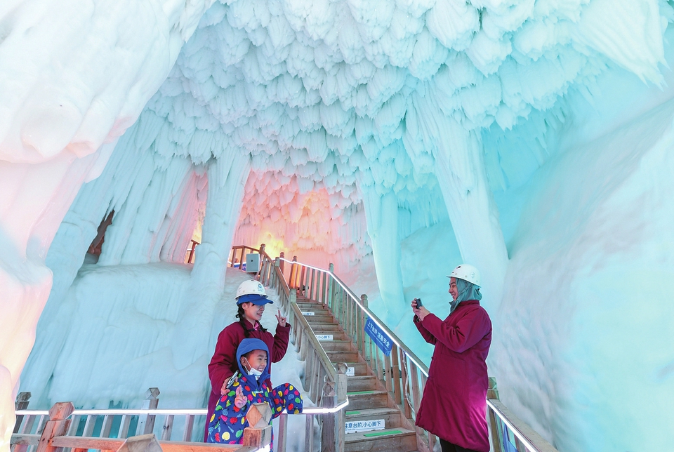 七月二十七日,在鄉(xiāng)寧縣云丘山景區(qū)超大冰洞群,游客在拍照留念。盛夏時節(jié),這個奇妙夢幻的冰雪世界,吸引了數以萬計的游客。閆銳鵬攝