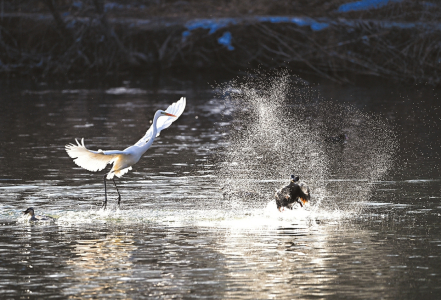 在太原市汾河濕地公園,三五成群的白鷺嬉戲覓食,成為汾河岸邊一道靚麗的風(fēng)景。白鷺是國家二級保護動物,被稱為環(huán)保鳥。汾河濕地水清草茂,樹木成林,越來越多的珍稀鳥類在此“安家”過冬。