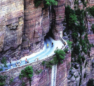 在太行山脈的晉豫交界帶,是我國第一階梯和第二階梯的分界線。在山脈的東西兩側(cè),地勢險要,垂直落差極大,形成了一座座筆直陡峭的懸崖絕壁,也構(gòu)造了大自然鬼斧神工的絕佳壯美奇景,卻也因此地形阻礙了大山居民的出行之路,千百年來的大山人民過著與世隔絕的生活。到了20世紀(jì)五六十年代,大山的居民們以愚公移山的精神,克服重重苦難,在懸崖峭壁上一錘一斧開出了一條條連接大山與外界的“掛壁公路”。
